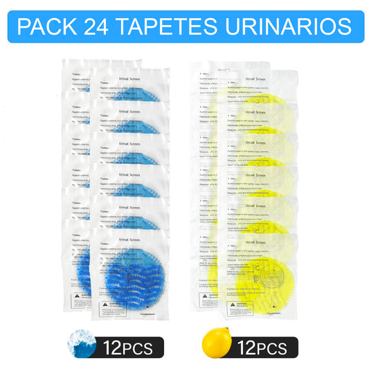 24 Tapetes Urinarios Redondos Azul y Amarillo