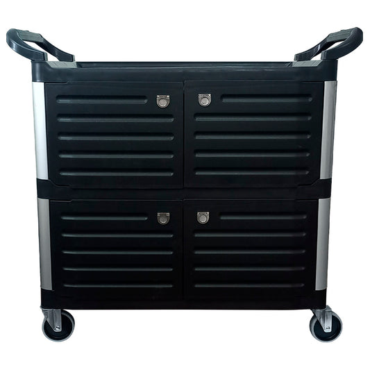 Carro Aseo 3 Niveles Negro Con Puertas Reforzado