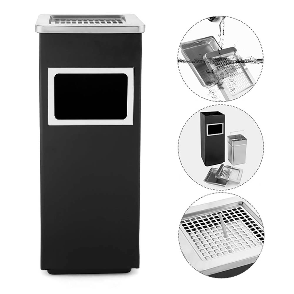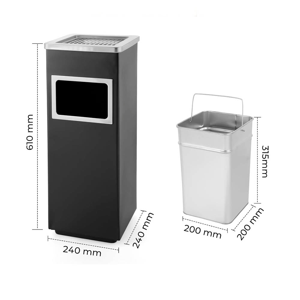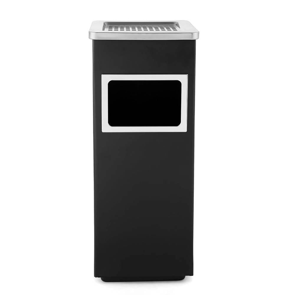 Papelero Metálico Negro con Cenicero Cuadrado